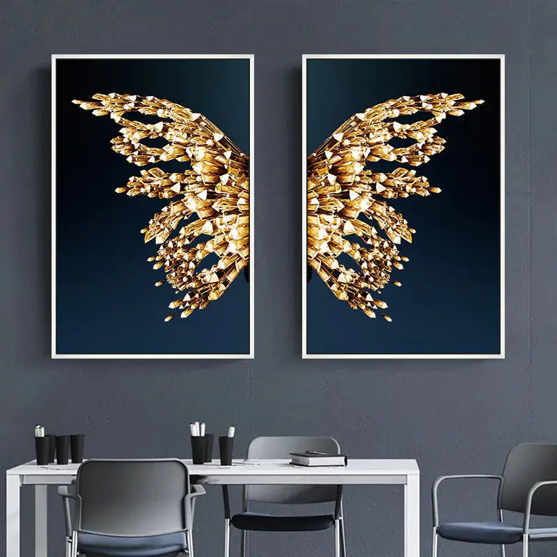 Abstract Gold Butterfly Wings Art for Living Room Decor
