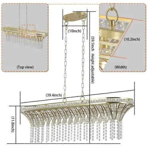 Chandelier Dimensions: L 39.4" x W 10.2" x Height adjustable from 59.1" to 11.8" (adjustable chain)