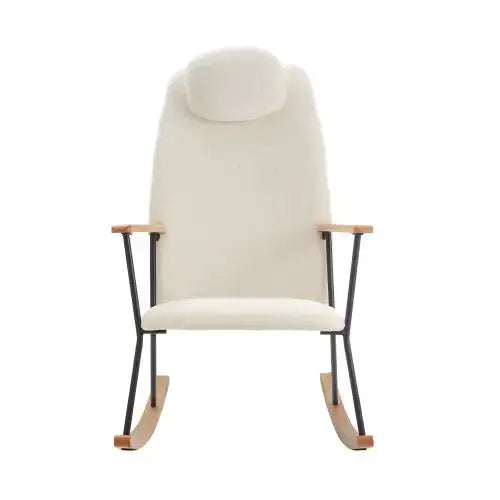 Adjustable headrest rocking chair, teddy fabric upholstered gliding rocking chair, high backrest, modern rocking chair, comfortable side chair for children's room, bedroom, living room, comfort (white)