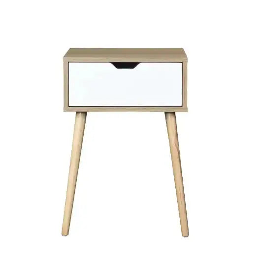 Side Table With 1 Drawer And Rubber Wood Legs, Mid-Century Modern Storage Cabinet For Bedroom Living Room Furniture
