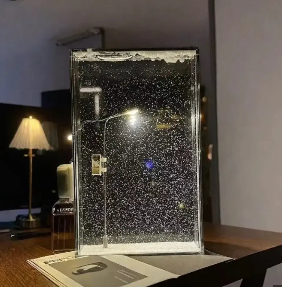 Winter Magic in Your Home: Bring the charm of a snowy night right into your living room, study, or office. The soft light and snow simulation effect create a magical, wintery vibe all year round.